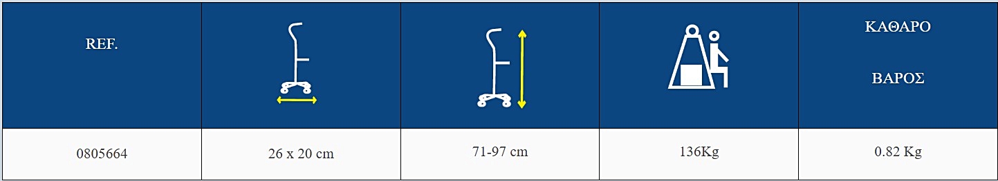 Χάρη στη σταθερή τετραπλή βάση, προσφέρει μεγαλύτερη ισορροπία και ασφάλεια από τα συμβατικά μπαστούνια, ενώ η εργονομική